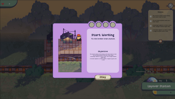 Layover is a cozy station simulation game where the player is caretaker of a small rural train platform. The game is about routines, care, and aesthetic improvement more than expansion or profit. The player maintains and decorates the station, slowly improving its reputation and atmosphere.
